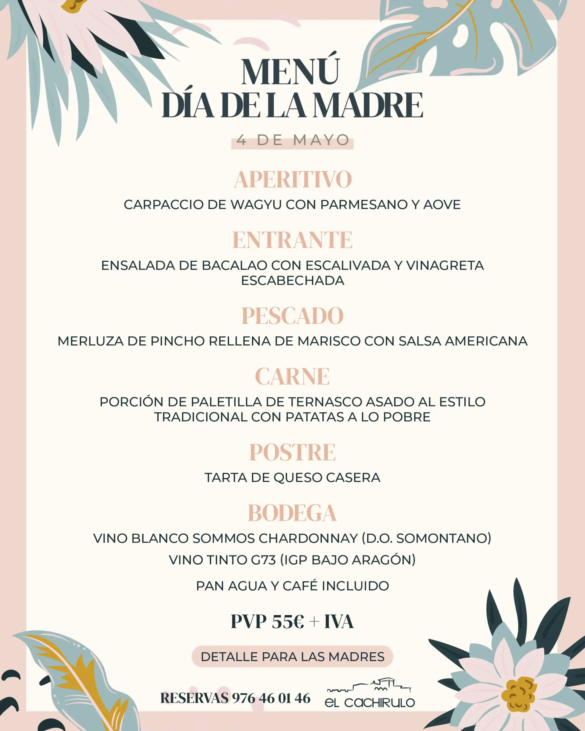 👩👧👦 El Día de la Madre se acerca y en Restaurante El Cachirulo queremos celebrarlo contigo con un menú muy especial, pensado para compartir en familia. 🍽️✨